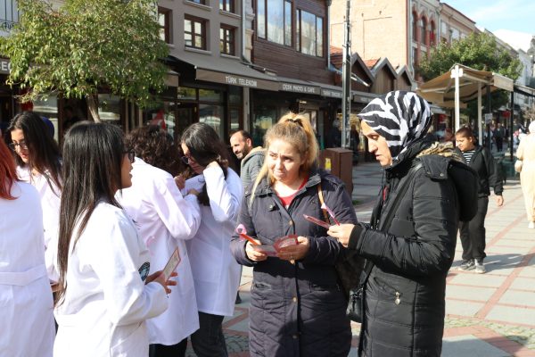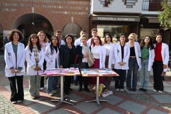 Edirne’de, Trakya Üniversitesi (TÜ) Tıp Fakültesi öğrenci ve akademisyenleri vatandaşlara meme kanserinde erken teşhisin önemini anlattı.