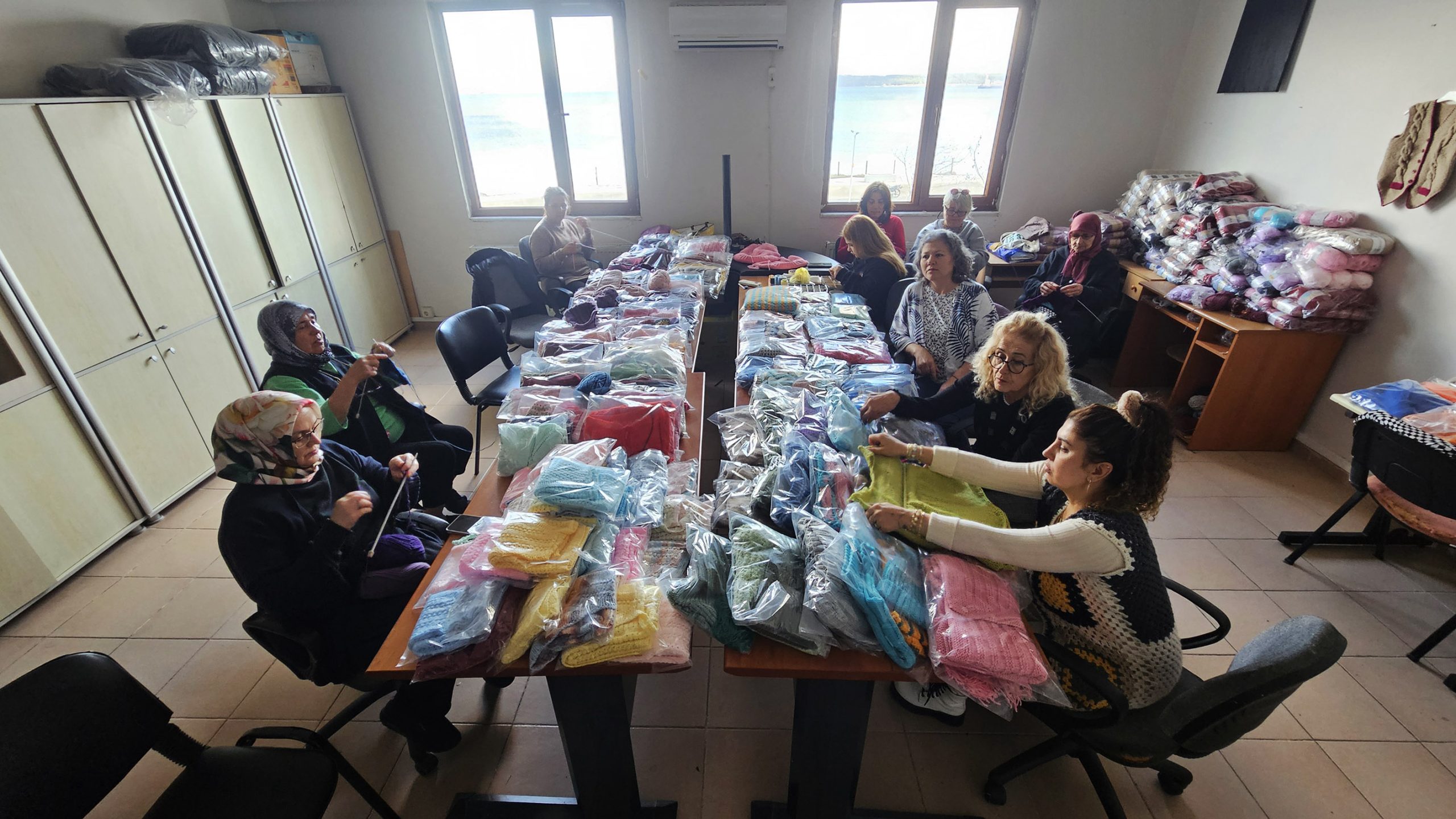 Türk Kızılay Çanakkale Şubesi ile Eceabat Halk Eğitimi Merkezi işbirliğinde hayata geçirilen “Şehitler Diyarından Gazzeli Çocuklara Umut Projesi” kapsamında kursiyerler tarafından 250’ye yakın kazak, atkı, bere, çorap ve patiğin el örgüsüyle yapımı sağlandı.