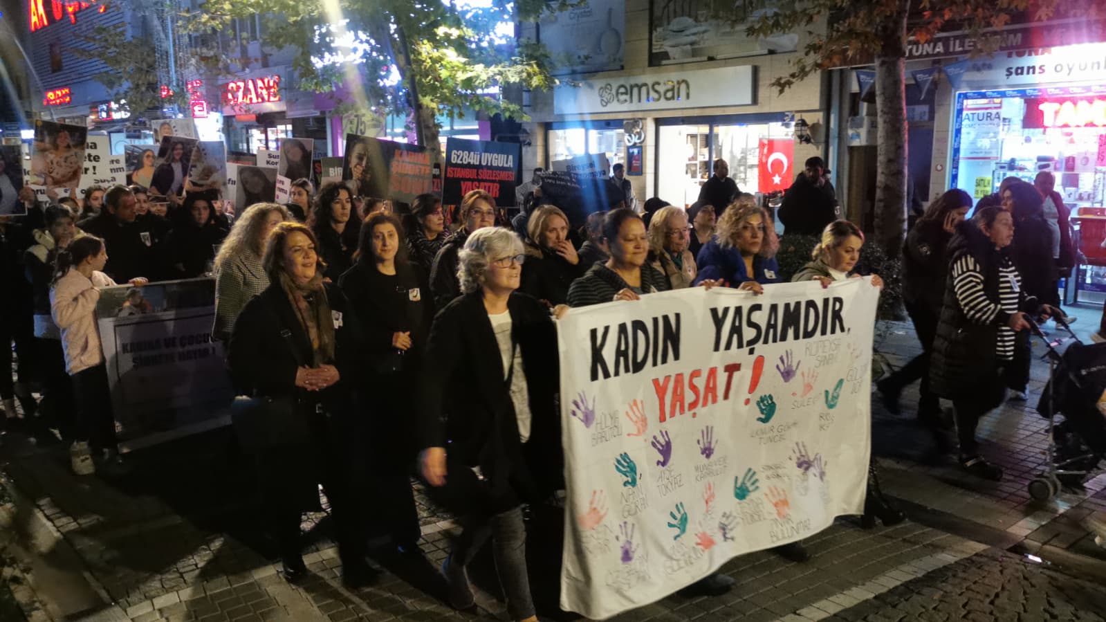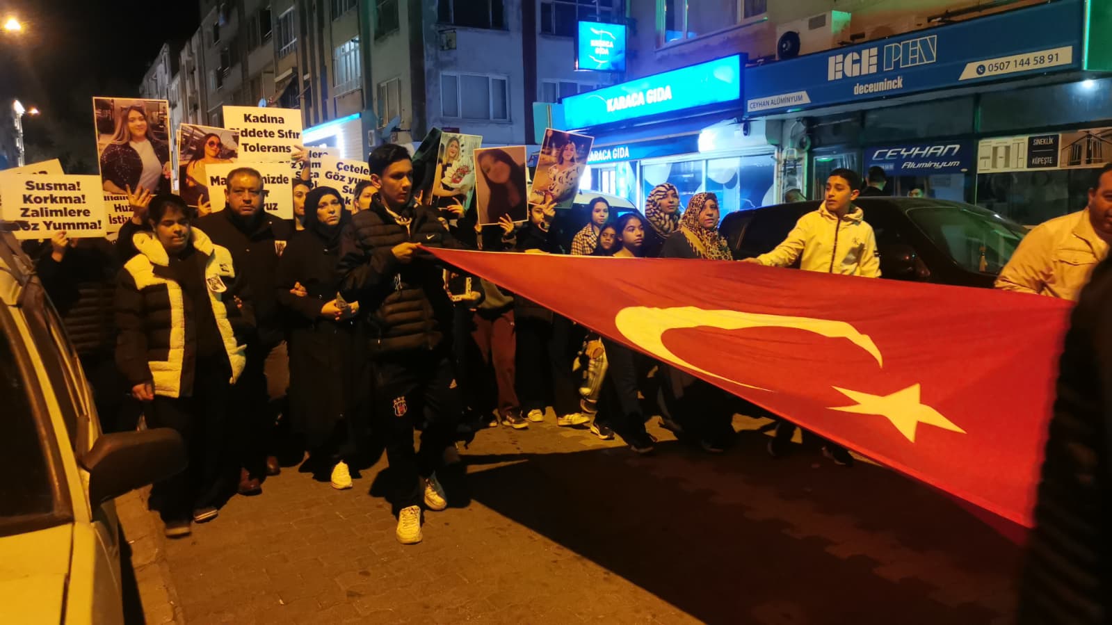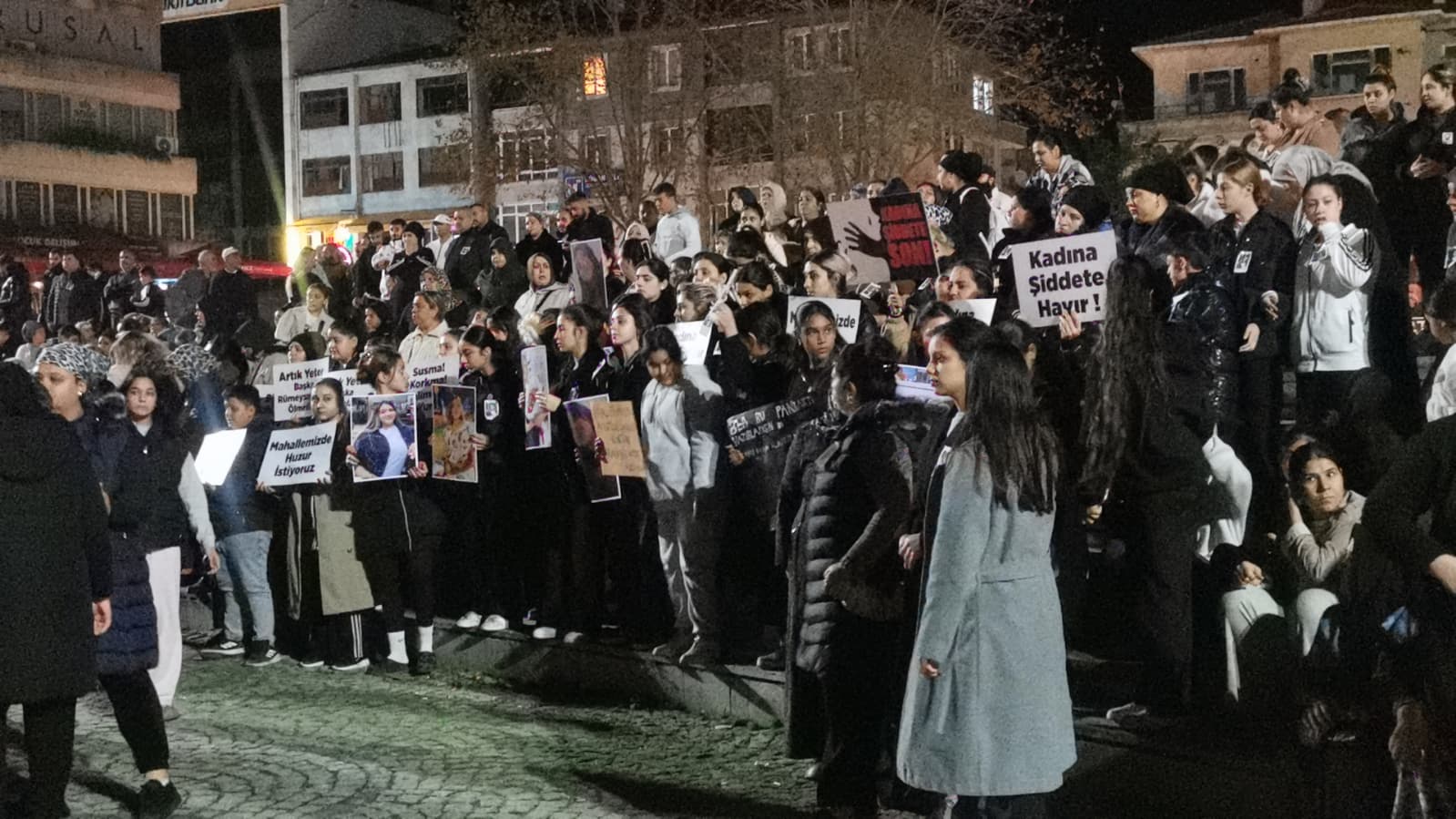 Gündoğdu Mahallesi’nde toplanan grup “Şiddete son”, “Kadına şiddete hayır” yazılı dövizlerle Kongre Meydanı’na yürüdü.