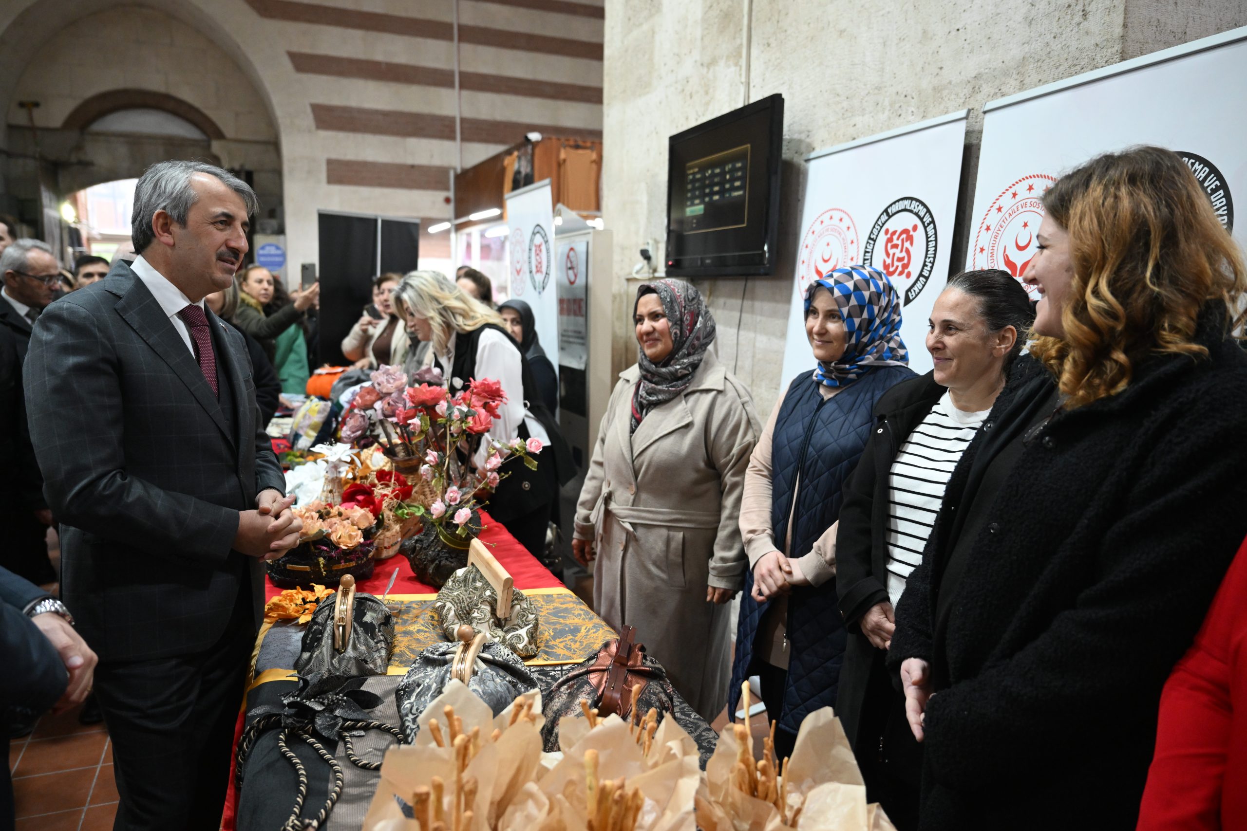 Edirne’de Sosyal Dayanışma Merkezleri (SODAM) kursiyerlerince hazırlanan el emeği ürünler Bedesten Çarşısı’nda sergilendi.
