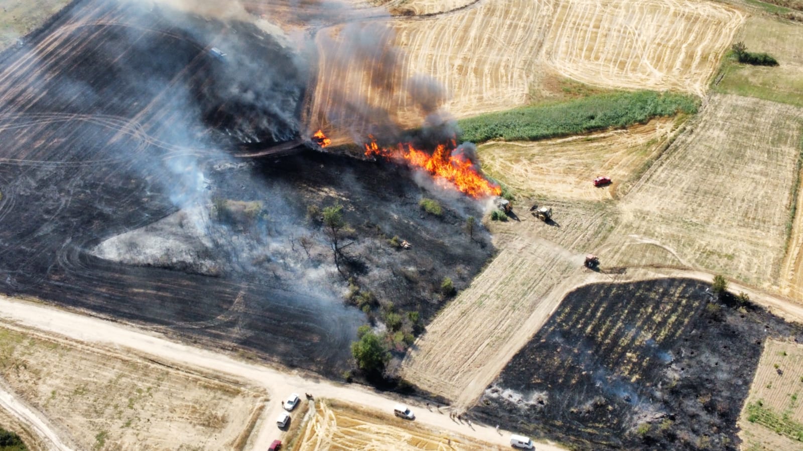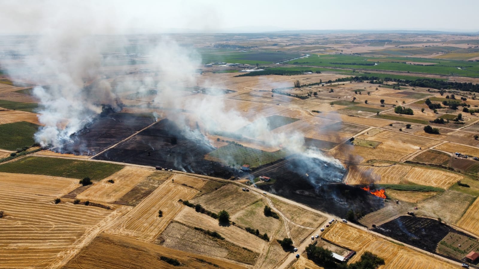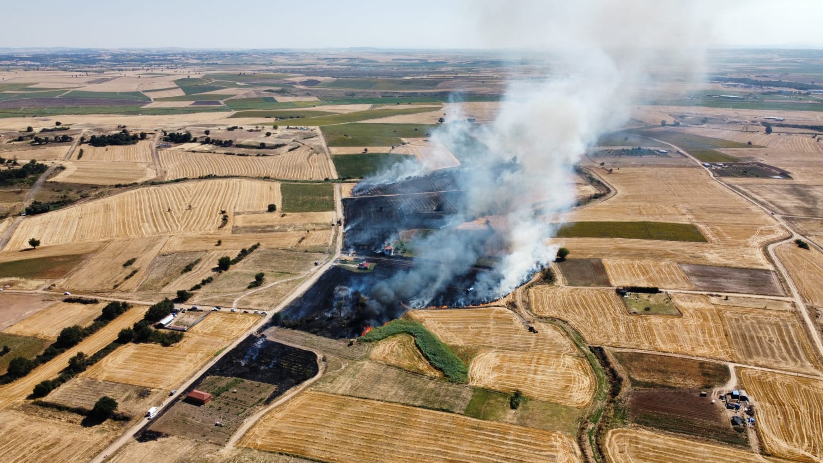 Edirne’nin Uzunköprü ilçesine bağlı Cumhuriyet Mahallesi’nde, cezaevi arkasında bulunan buğday anızında yangın çıktı. Olay yerine hızla müdahale eden Uzunköprü Belediyesi İtfaiye ekipleri, alevlerin şehir merkezine ve diğer tarım arazilerine sıçramasını engellemek için yoğun çaba sarf ediyor.